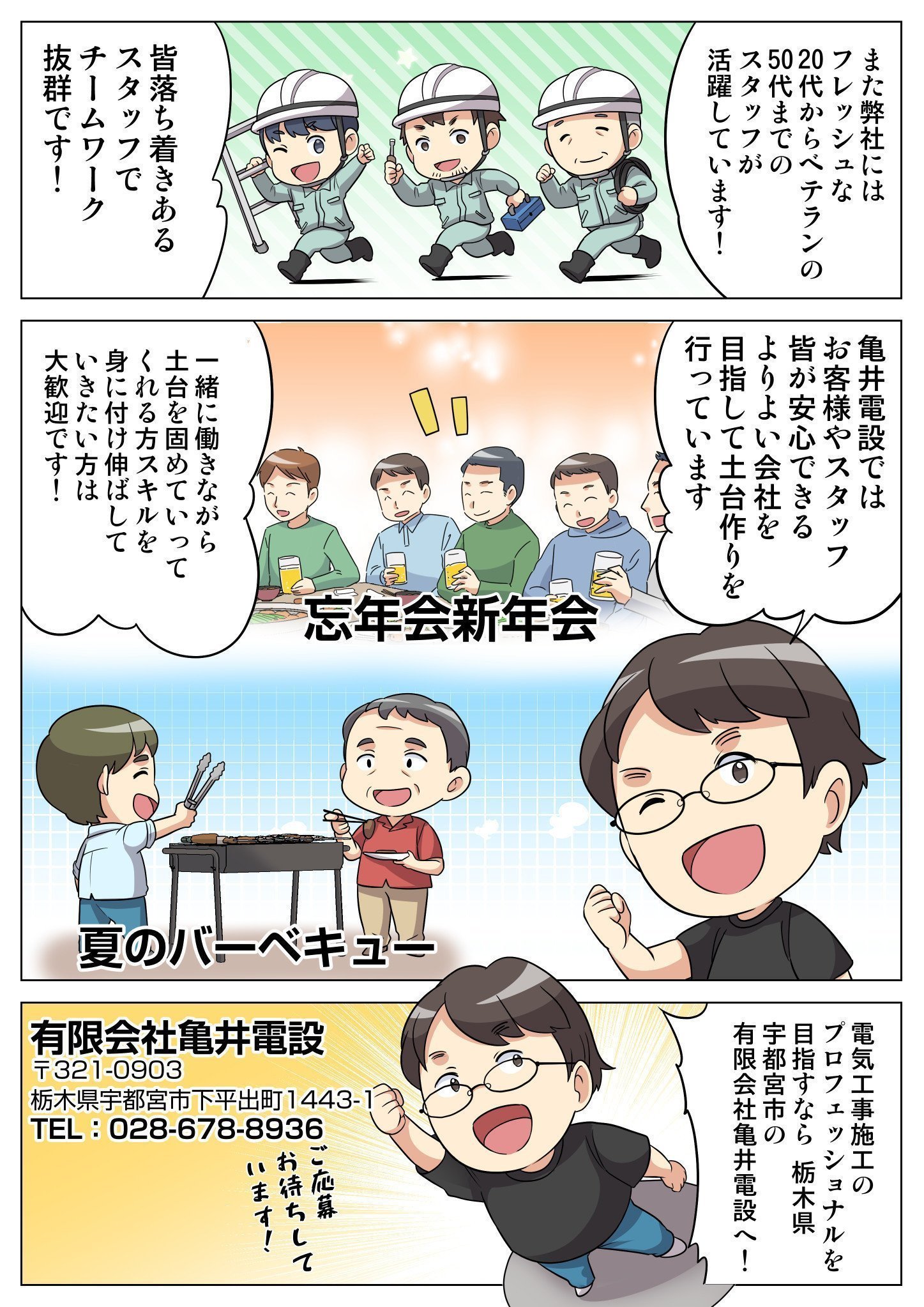 有限会社亀井電設では新しい期に向けて、より安定した会社の土台づくりを心掛けています。私たちと一緒に、お客様はもとよりスタッフ全員に安心していただけるような会社を作っていきませんか?あなたからのご応募、心よりお待ちしています。